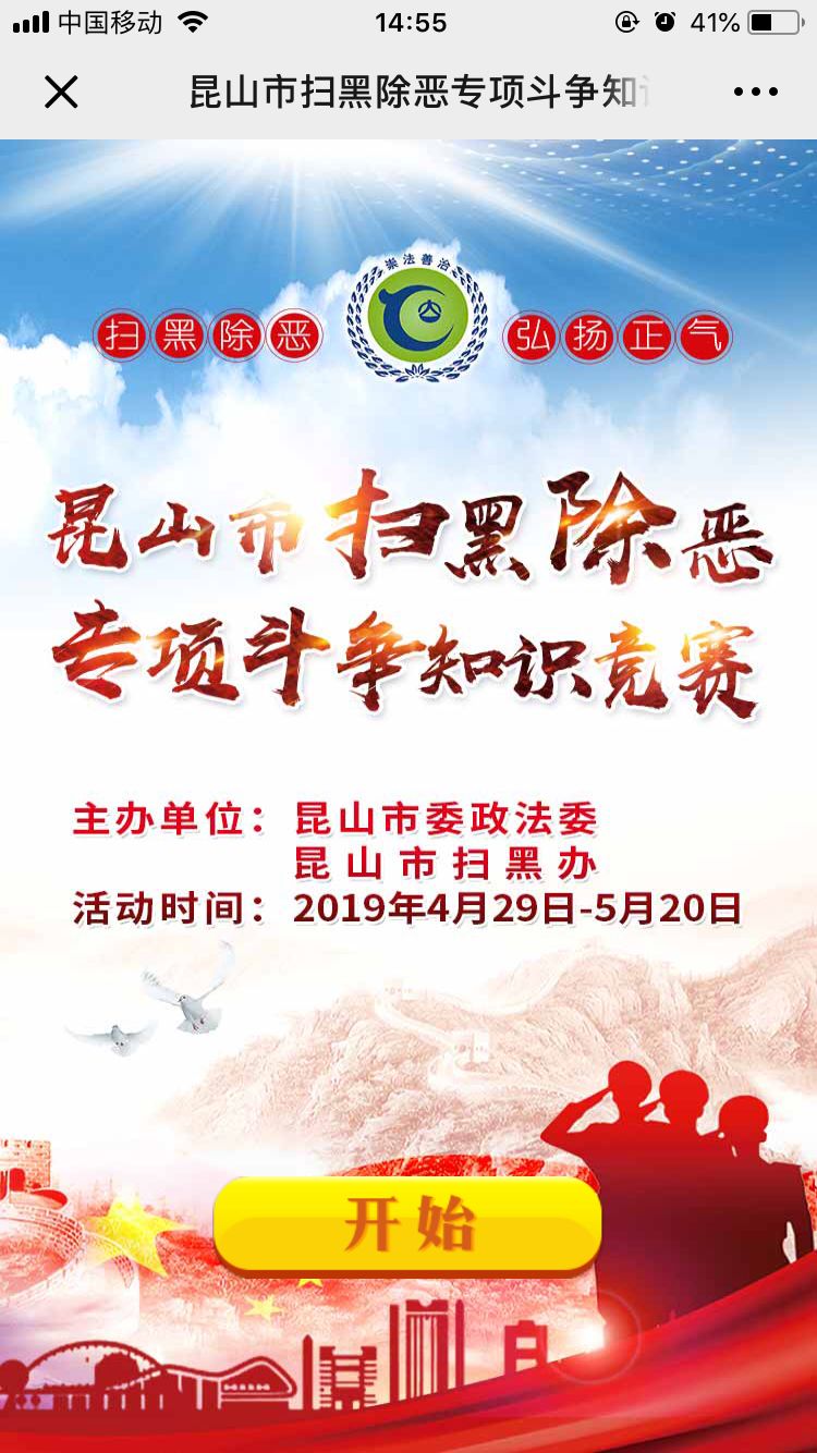 为深入贯彻落实党的十九大部署和习近平总书记重要指示精神,根据《扫黑除恶专项斗争宣传工作方案》的有关部署要求,进一步营造扫黑除恶专项斗争良好氛围,将扫黑除恶专项斗争推向纵深,昆山市委政法委、昆山市扫黑办决定在全市范围内组织开展扫黑除恶专项斗争知识竞赛,在全市范围内普及扫黑除恶专项斗争知识,提高扫黑除恶专项斗争的知晓率和参与度,营造有黑必扫、有恶必除、有乱必治,敢于亮剑的风清气正环境。