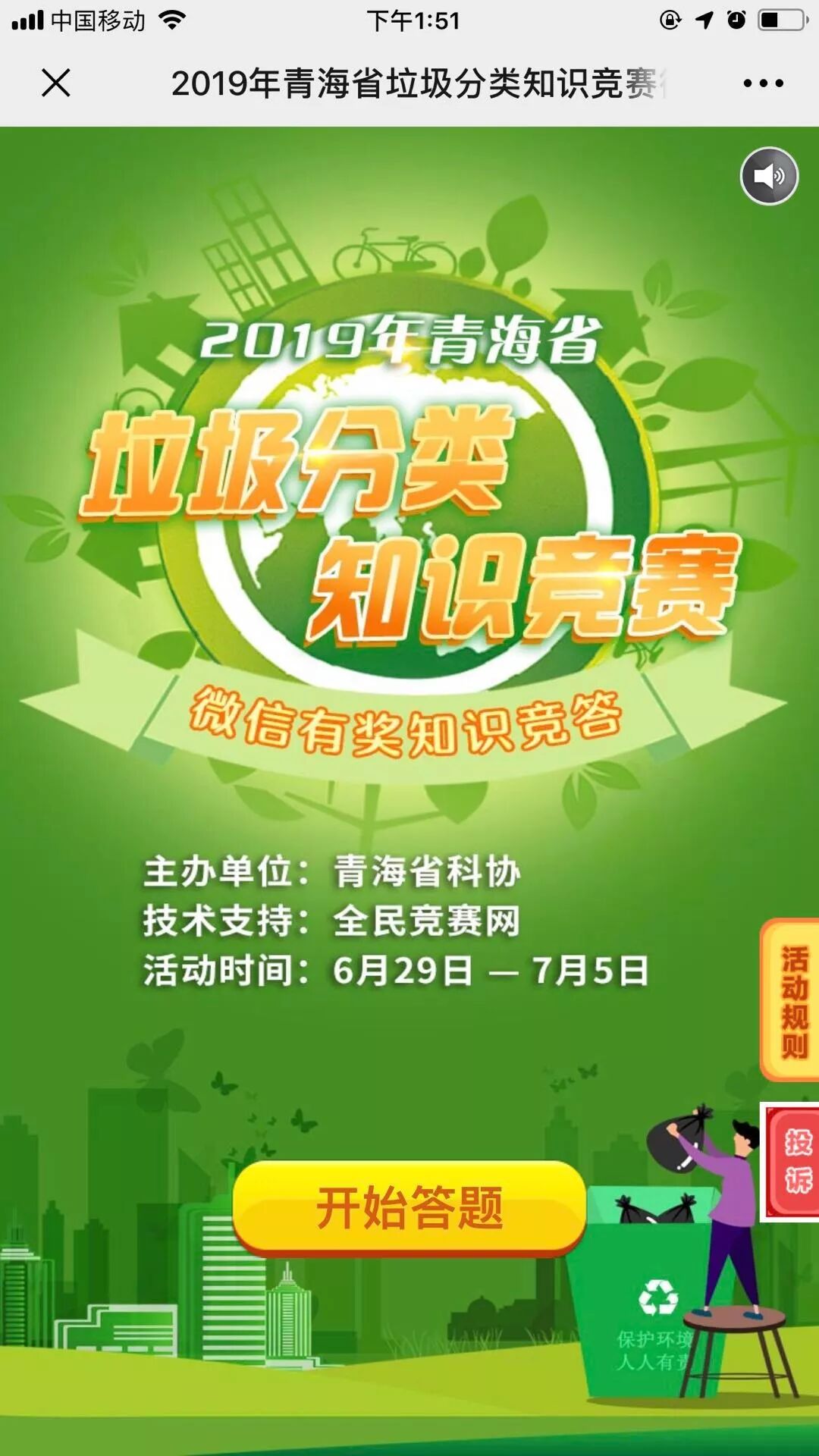 2、进入公众号,点击底部菜单“线上活动”中的“有奖竞答”,进入答题页面参与活动。