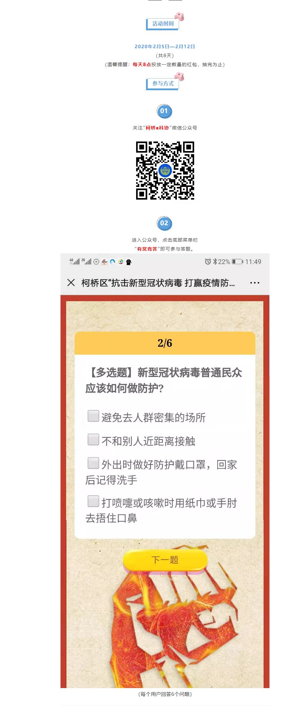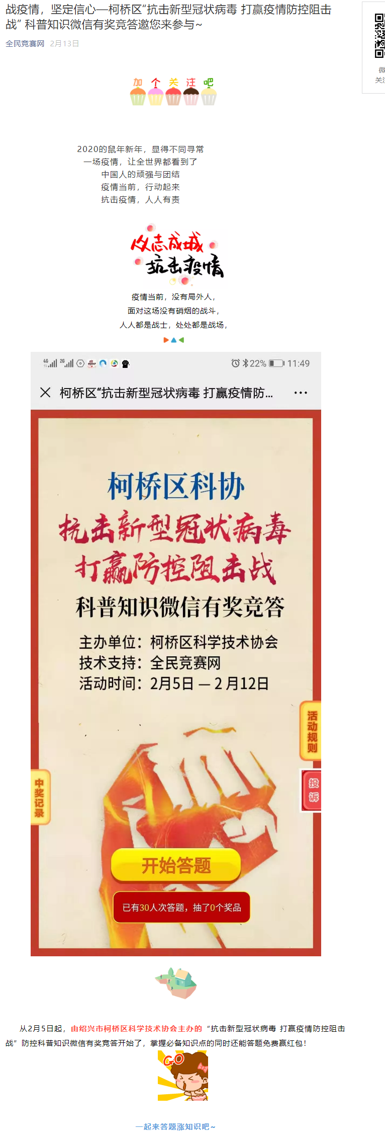 战疫情,坚定信心—柯桥区“抗击新型冠状病毒 打赢疫情防控阻击战” 科普知识微信有奖竞答邀您来参与~