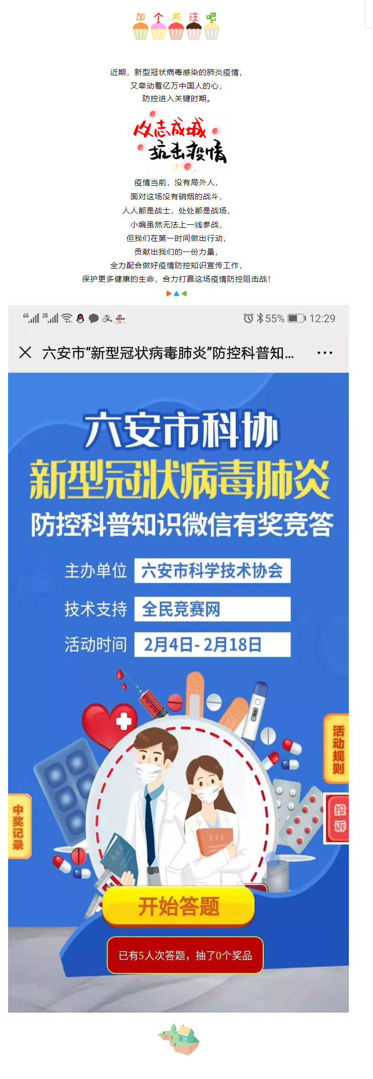 战疫情,我们在行动—六安市“新型冠状病毒肺炎”防控科普知识微信有奖竞答邀您来参与~