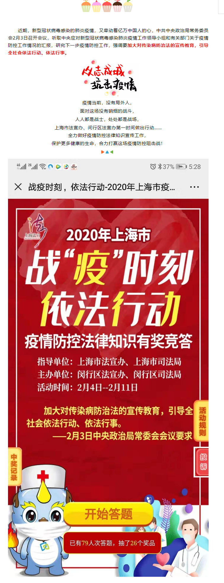 战“疫”时刻 依法行动~上海市疫情防控法律知识有奖竞答等你来!